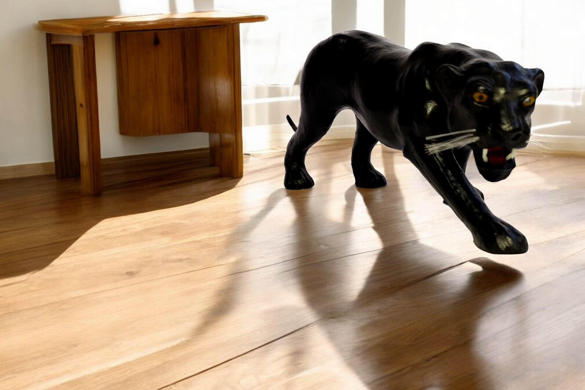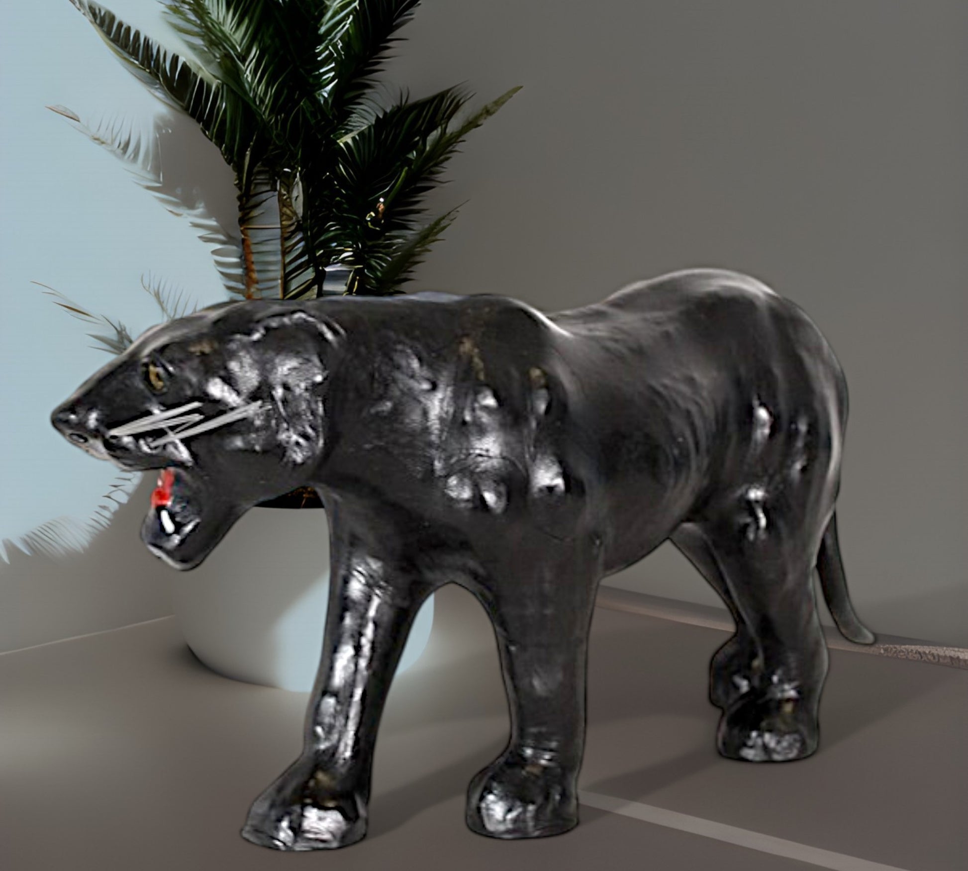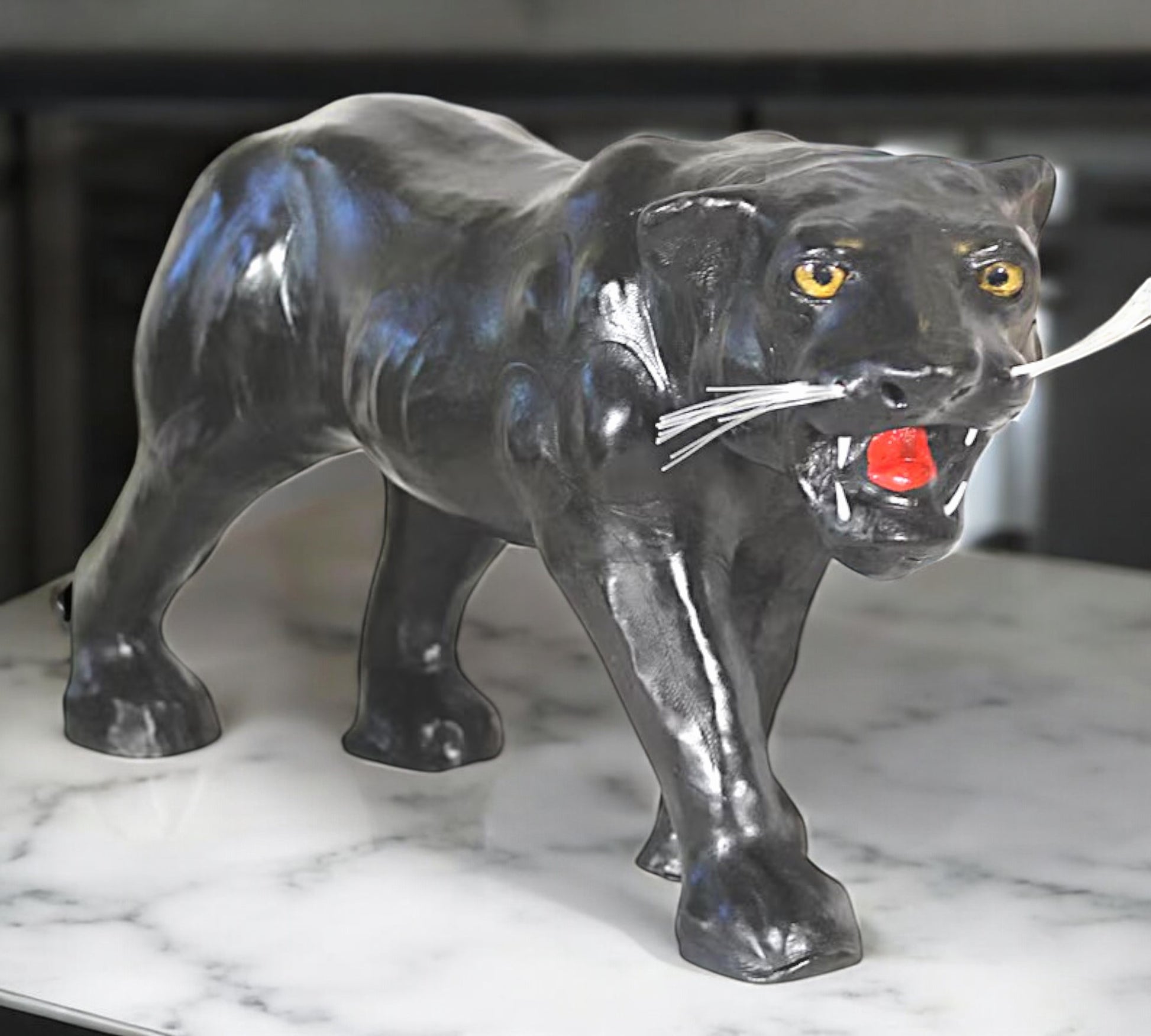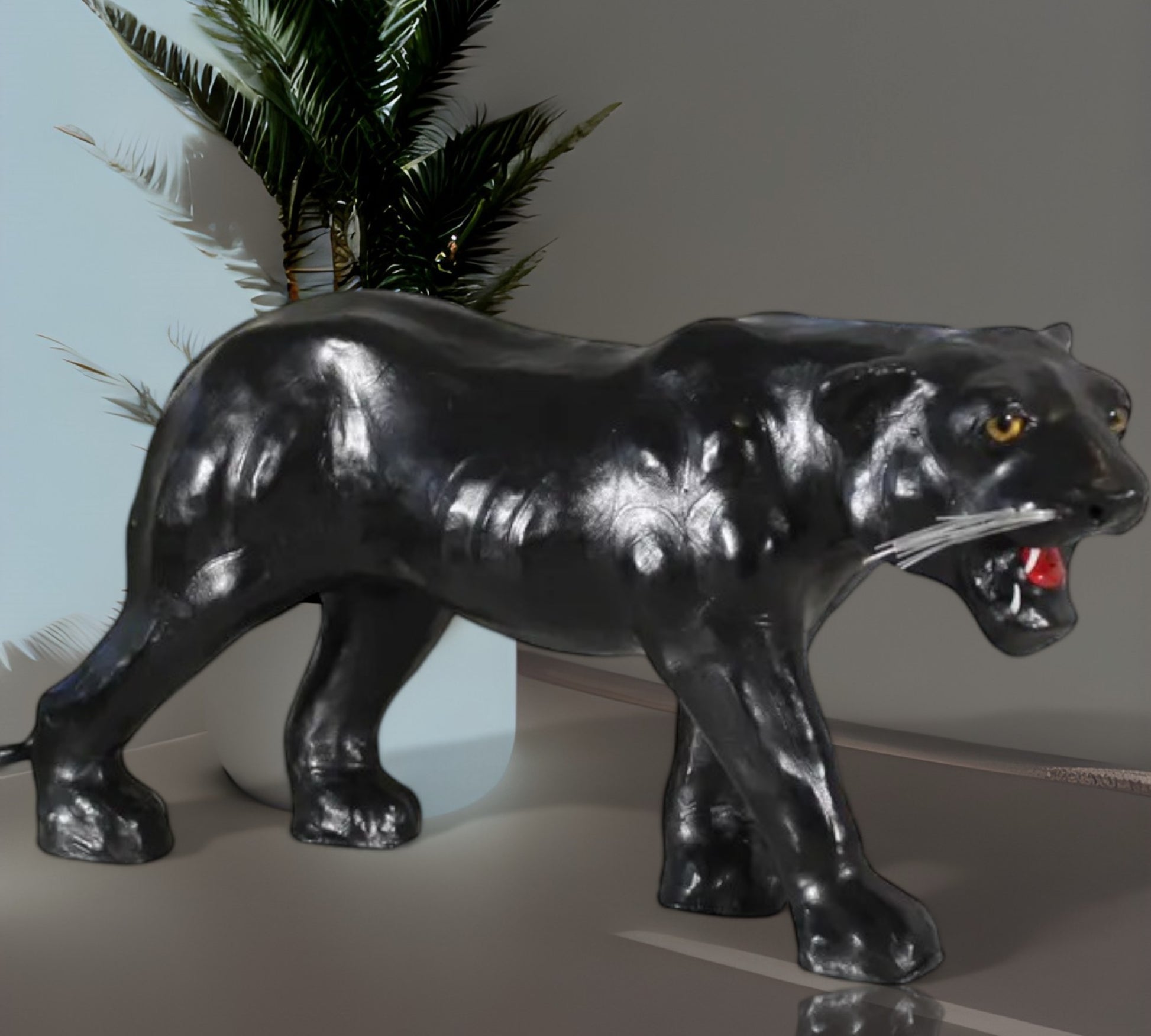 High-End Designer Black Panther Statue Handmade Leather Decorative Figurine for Table Top Shelf or Home Office Decor African Jungle Cat