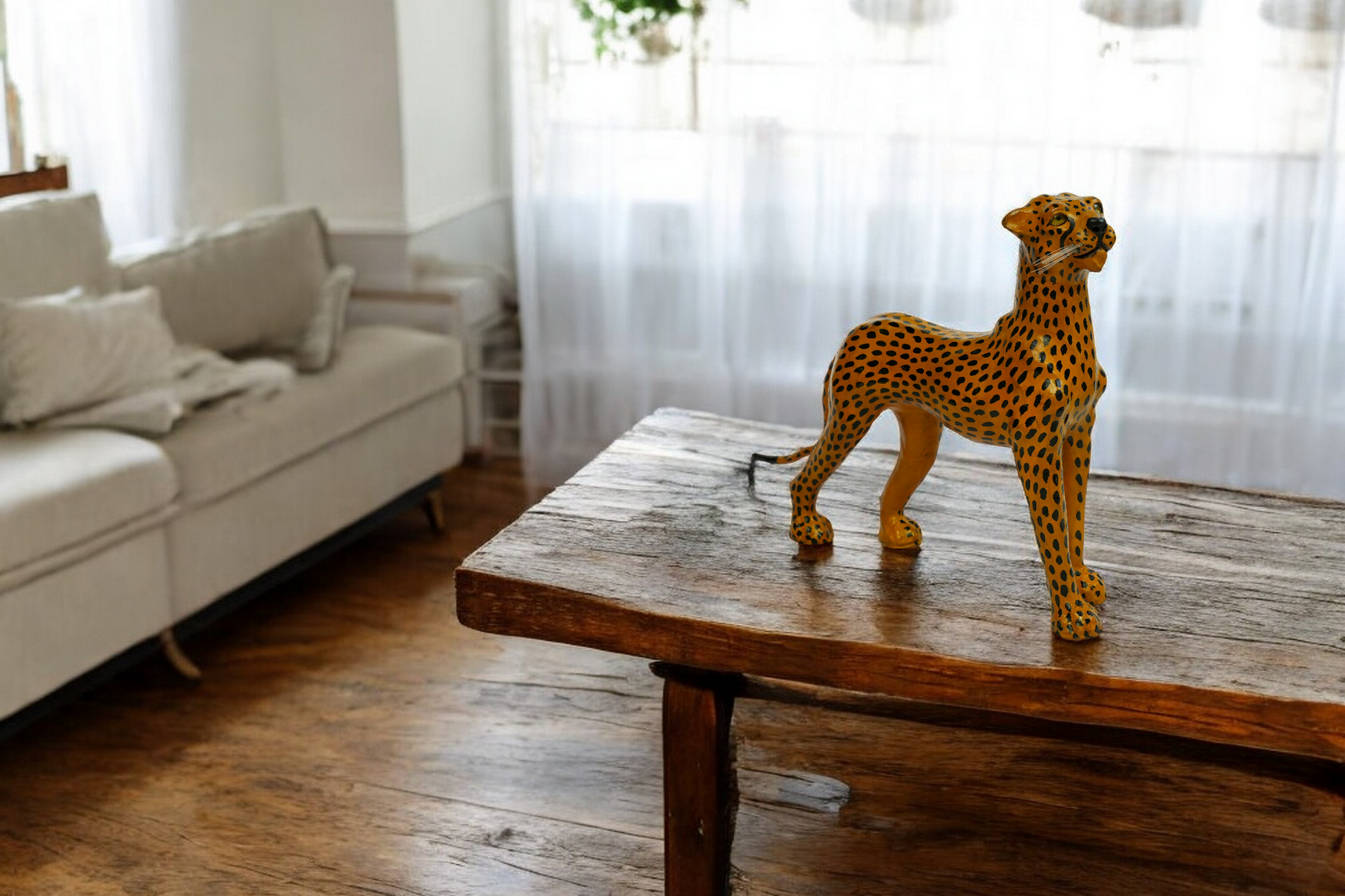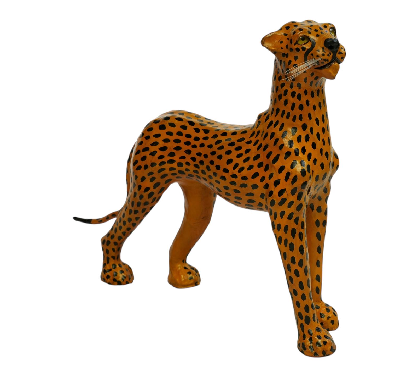 Cheetah Standing Leather Wildlife Handmade Art Sculpture High-End Unique Decor Figurine for Home