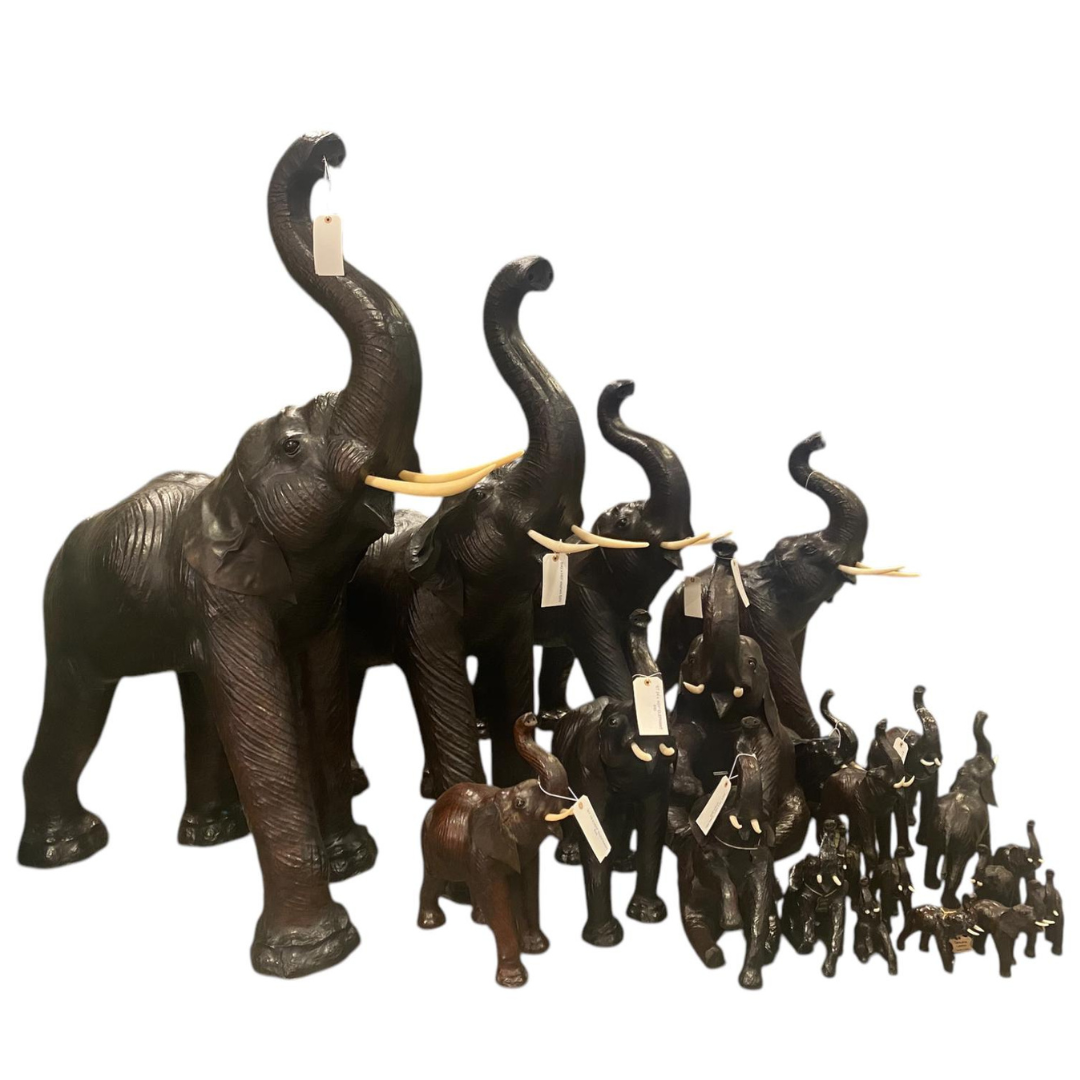 Elephant Standing Handcrafted Lifelike Leather Sculpture for Home or Office Decor