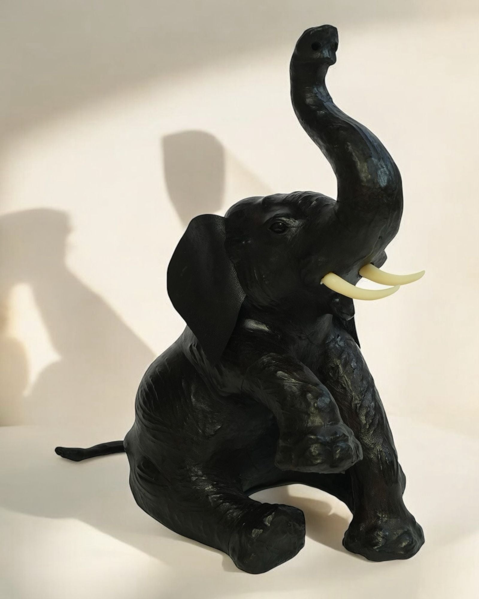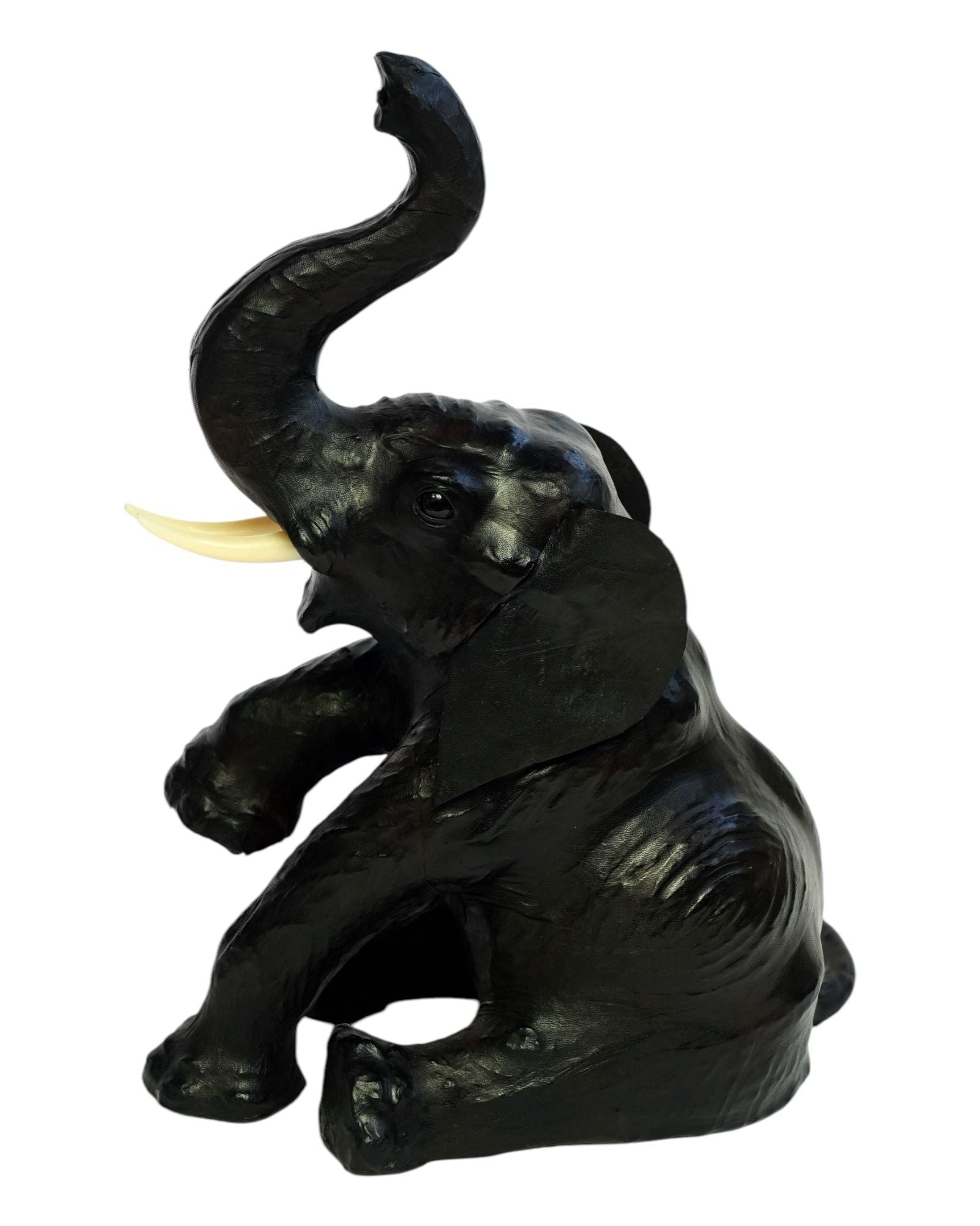 Baby Elephant with Trunk Up Leather Statue for Home or Office Decor Rustic Animals Cabin Decoration Traditional Accessories Collectibles